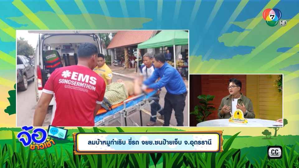 จ้อข่าวเช้า - ลมบ้าหมูกำเริบ ขี่รถ จยย.ชนป้ายเจ็บ จ.อุดรธานี - ขี่รถ จยย.ไม่มองทาง ชนท้ายรถตู้เจ็บสาหัส จ.ระยอง