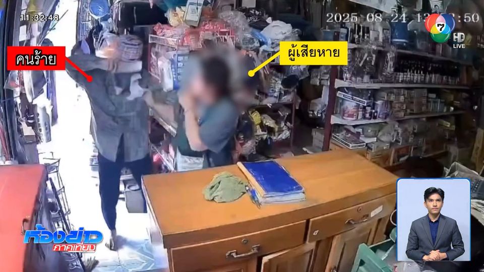 ภาพวงจรปิดในร้านของชำแห่งหนึ่ง บันทึกภาพคนร้าย เป็นชายใช้ผ้าลายสก็อตปิดบังใบหน้า แล้วใช้มีดปังตอ เดินบุกเดี่ยว เข้ามาจี้ชิงทรัพย์เจ้าของร้าน โดยกระชากสร้อยคอสีทองที่คอ แล้ววิ่งหลบหนีไปหน้าตาเฉย ทำเอาเจ้าของร้านถึงกับกรี๊ดลั่นด้วยความตกใจ ก่อนจะนึกขึ้นได้ รีบร้องตะโกนให้เพื่อนบ้านช่วยเหลือ เหตุการณ์นี้เกิดขึ้นกลางวันแสก ๆ ช่วงบ่ายวานนี้ (24 ส.ค.)
