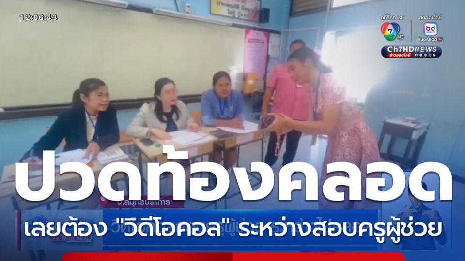 ห้องข่าวภาคเที่ยง - สนามสอบครูผู้ช่วยสมุทรปราการ มีเรื่องตื่นเต้น หลังจากที่ มีผู้เข้าสอบสัมภาษณ์ ระหว่างรอรายงานตัว เจ็บท้องกะทันหัน ต้องไปที่โรงพยาบาล แล้ว ระหว่างนั้น วิดีโอคอล เข้าสอบสัมภาษณ์กันสด ๆ