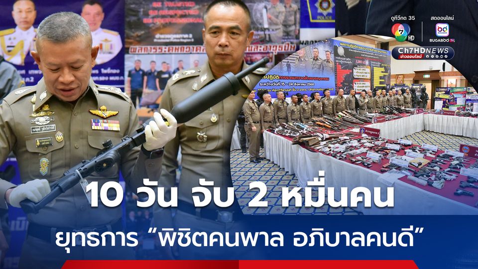 วันนี้ (26 ส.ค. 68) เมื่อเวลา 11.00 น. ที่ผ่านมา พล.ต.อ.ธนายุตม์ วุฒิจรัสธำรงค์ ที่ปรึกษาพิเศษสำนักงานตำรวจแห่งชาติ แถลงผลการดำเนินการระดมกวาดล้างอาชญากรรม เป้าหมายผู้กระทำความผิดเกี่ยวกับอาวุธปืน และเครื่องกระสุนปืน และสืบสวนจับกุมบุคคลตามหมายจับ ระหว่างวันที่ 15 – 24 ส.ค. 68 ภายใต้แผนยุทธการ “พิชิตคนพาล อภิบาลคนดี”