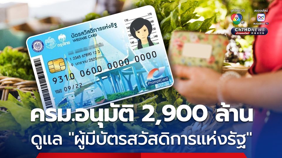 ครม. อนุมัติงบกลาง 2,900 ล้านบาท เติมเข้ากองทุนฯ เพื่อดูแล "ผู้มีสิทธิสวัสดิการแห่งรัฐ" กว่า 13 ล้านคน ให้เพียงพอก่อนสิ้นปีงบประมาณ