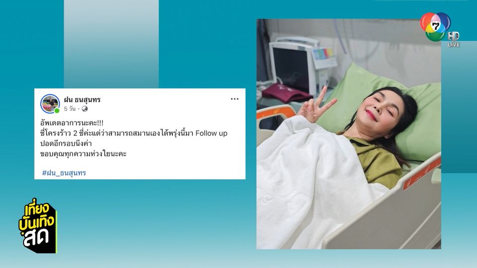 ล่าสุดทีมข่าวเราไปเจอพี่ฝนมา อัปเดตอาการตอนนี้ดีขึ้นมาก สามารถกลับมาทำงานได้แล้ว แต่อาจจะยังขยับเขยื้อนออกแรงมากไม่ได้ ซึ่งเหตุการณ์ครั้งนี้เป็นความประมาทของตนเองที่ก้าวพลาดสะดุดก้อนอิฐ ขอบคุณทุกกำลังใจที่ส่งเข้ามา รวมถึงฝากแฟน ๆ จะเดินจะทำอะไร ต้องระมัดระวังด้วย