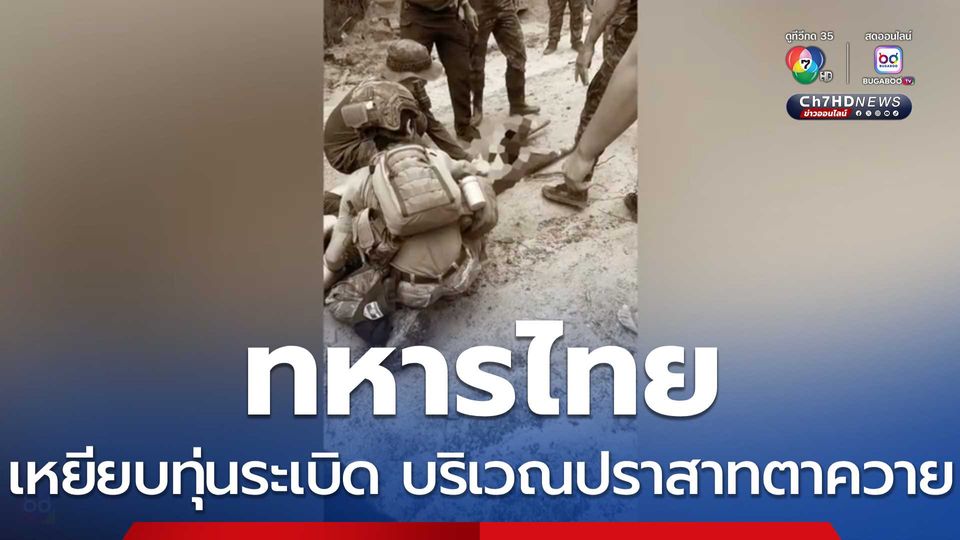 ข่าวภาคค่ำ - ยังไม่หมดกับทุ่นระเบิดที่กัมพูชานำมาวางในพื้นที่ของไทย ทำให้กำลังพลบาดเจ็บสูญเสียขาอีก 1 นาย หลังออกปฏิบัติหน้าที่ ตรวจไม่เจอทำจากพลาสติก ส่งเฮลิคอปเตอร์รับตัวส่งรักษาพยาบาลแล้ว