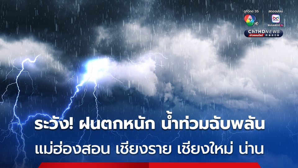 กรมอุตุนิยมวิทยา เตือน! แม่ฮ่องสอน เชียงใหม่ เชียงราย น่าน ระวังน้ำท่วมฉับพลัน น้ำป่าไหลหลาก จากฝนตกหนัก