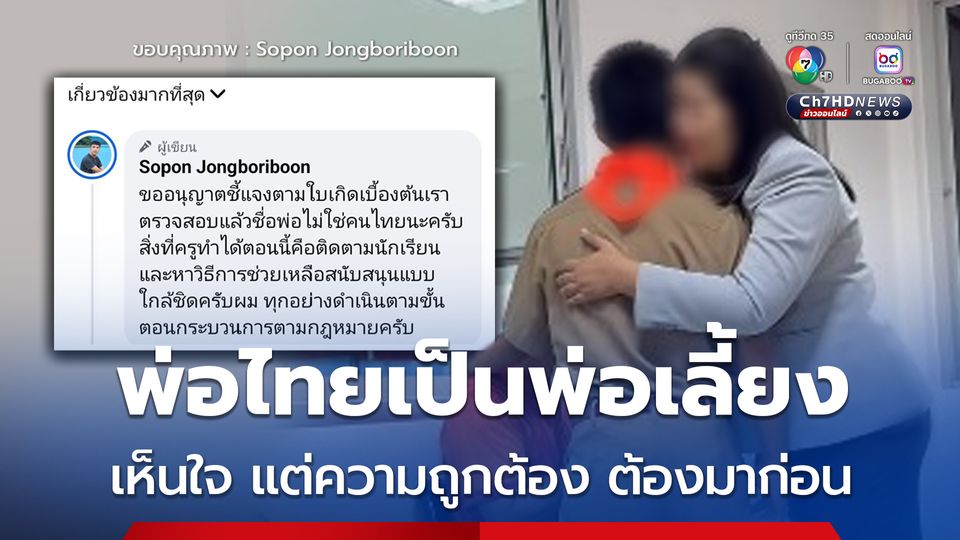 นร. 13 ปี โดนแจ้งจับเป็นต่างด้าว ความจริงคือพ่อไทยเป็นพ่อเลี้ยง ครูตรวจสอบใบเกิดแล้วพร้อมชี้แจงเพิ่มเติม พ่อของเด็กไม่ใช่คนไทย สิ่งที่ครูทำได้คือ หาทางช่วยเหลือตามขั้นตอนกฎหมาย