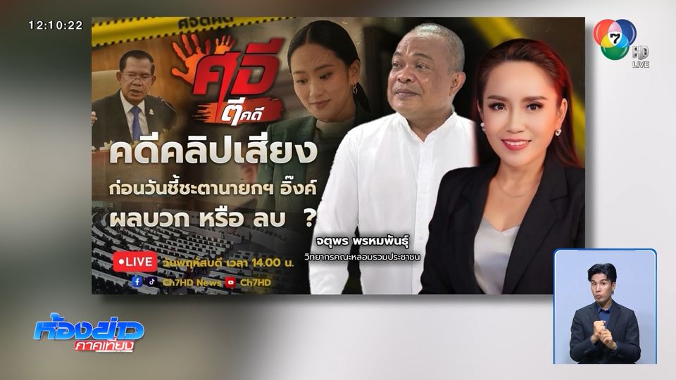 ห้องข่าวภาคเที่ยง - รายการออนไลน์ ศจี ตีคดี คดีคลิปเสียง ก่อนวันชี้ชะตานายกฯ อิ๊งค์ ผลบวก หรือลบ เวลา 14.00 น. แขกรับเชิญ จตุพร พรหมพันธุ์ วิทยากรคณะหลอมรวมประชาชน