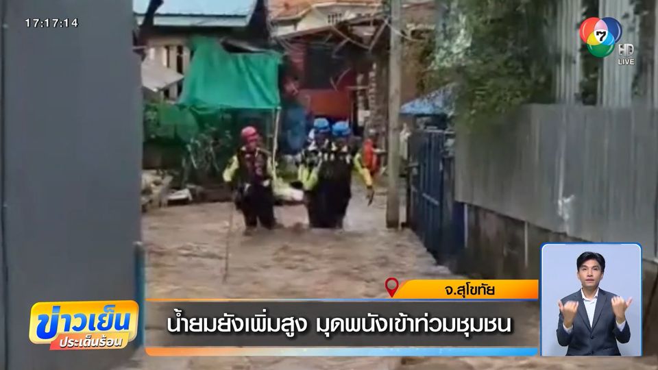 ข่าวเย็นประเด็นร้อน - น้ำท่วมที่จังหวัดสุโขทัย ยังน่าเป็นห่วง หลังน้ำยมมุดทะลุพนังกั้นน้ำไม่หยุด จนต้องอพยพชาวบ้านในชุมชนคูหาสุวรรณ