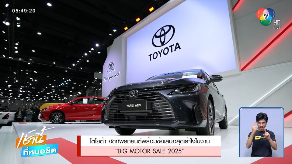 บริษัท โตโยต้า มอเตอร์ ประเทศไทย จำกัด ยกทัพขบวนรถยนต์โตโยต้าหลายรุ่น รวมถึงรุ่นแต่งพิเศษ มาให้ทุกท่านได้สัมผัสกันภายในงาน "BIG MOTOR SALE 2025" พบกับ กลุ่มรถยนต์ไฮบริด นำโดย YARIS ATIV HEV รุ่นใหม่ ที่เพิ่งเปิดตัวอย่างเป็นทางการ กับ 2 รุ่นย่อย คือ รุ่น HEV Premium ที่มาพร้อม ขุมพลังเครื่องยนต์ไฮบริด ขนาด 1.5 ลิตร ประหยัดสูงสุดด้วยอัตราการใช้เชื้อเพลิง 29.4 กม.ต่อลิตร มาตรฐานความปลอดภัยครบครัน