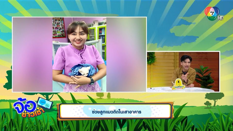 จ้อข่าวเช้า - ช่วยลูกแมวติดในเสาอาคาร