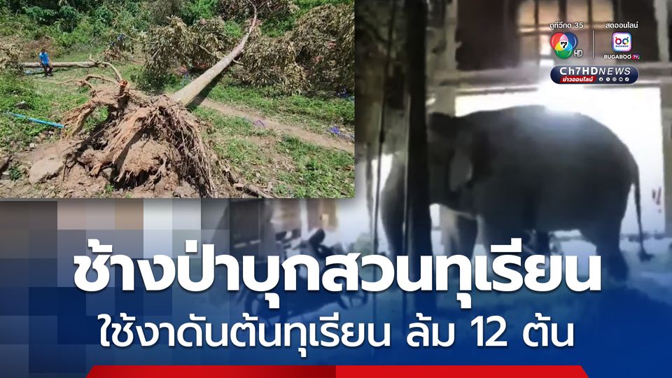 ช้างป่าบุกสวนทุเรียน ที่ จ.ยะลา ก่อนใช้งาดันต้นทุเรียนอายุ 50 ปี ล้ม 12 ต้น ชาวบ้านหวั่นซ้ำซาก ร้องขอรัฐเยียวยา ล่าสุด ปลัดอำเภอธารโต นำทีม จนท.อุทยานแห่งชาติบางลาง เข้าตรวจสอบความเสียหาย