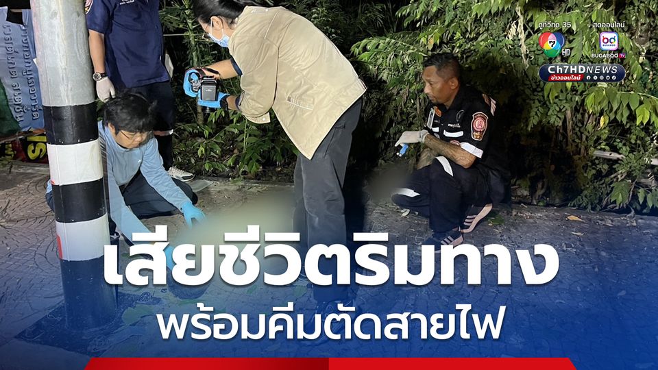พบศพชายนอนเสียชีวิตริมทาง พร้อมคีมตัดสายไฟ จนท.สันนิษฐานว่า ผู้เสียชีวิตน่าจะปีนต้นไม้ ขึ้นไปพยามตัดสายไฟ แต่พลาดพลัดตกลงมา