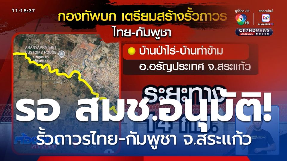 ห้องข่าวภาคเที่ยง - เริ่มกันแล้วกับพื้นที่แรกเขตแดนไทย-กัมพูชาจะมีรั้วกั้นแบบถาวรและแข็งแรง 14 กิโลเมตร เน้นป้องกันการรุกรานและเสริมความมั่นคง