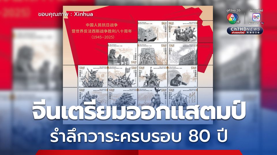 วันนี้ (29 ส.ค. 68) สำนักข่าวซินหัวรายงานว่า การไปรษณีย์จีนจะออกแสตมป์ที่ระลึกจำนวน 6 ล้านชุด วันที่ 3 ก.ย. นี้ โดยแต่ละชุดมีแสตมป์ 13 ดวง และแผ่นแสตมป์ขนาดเล็ก 5 ล้านแผ่น เพื่อรำลึกวาระครบรอบ 80 ปี ชัยชนะในสงครามประชาชนจีนต่อต้านการรุกรานของญี่ปุ่น และสงครามต่อต้านลัทธิฟาสซิสต์โลก