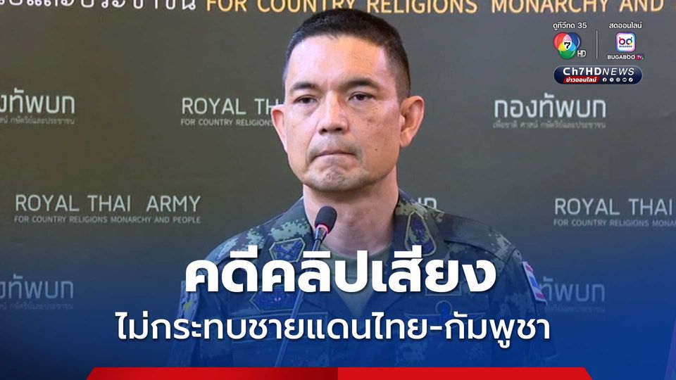 โฆษกกองทัพบก ยืนยันตัดสินคดีคลิปเสียง ไม่กระทบชายแดนไทย-กัมพูชา ไม่ว่ารัฐบาลชุดไหนก็ไม่กระทบ มองกัมพูชาพยายามที่จะใช้เวทีต่างประเทศ เป็นเครื่องมือกดดันไทย แต่ยังทำอะไรไม่ได้เพราะไทยมีความพร้อมในทุกเรื่อง กองทัพบกมีความพร้อมเผชิญสถานการณ์ทุกรูปแบบ