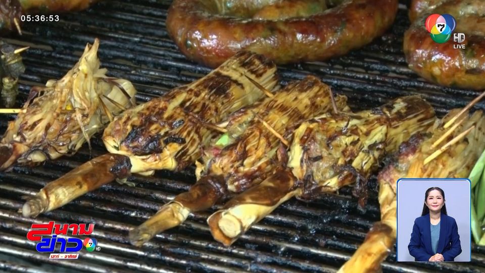 พาไปที่ร้านไส้อั่วบ้านอิฐ ประยุกต์นำดอกลิ้นฟ้า สมุนไพรพื้นบ้าน ดอกเพกา และ หน่อไม้ ที่กำลังออกในช่วงฤดูฝน มาทำ "ดอกลิ้นฟ้าอั่วและหน่อไม้อั่ว"