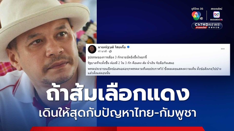 ณัฐวุฒิมองการเมือง 3 ก๊ก ถ้าส้มจับกับแดง ปชน. ได้ภาพผ่าทางตัน พท. สานต่อ รถไฟฟ้า 20 บาทตลอดสาย เดินให้สุดกับปัญหาชายแดนไทย-กัมพูชา ฮั้ว สว. คดีเขากระโดง แต่ถ้าเลือกจับกับน้ำเงิน เดาไม่ออก จะพาบ้านเมืองไปทิศทางใด