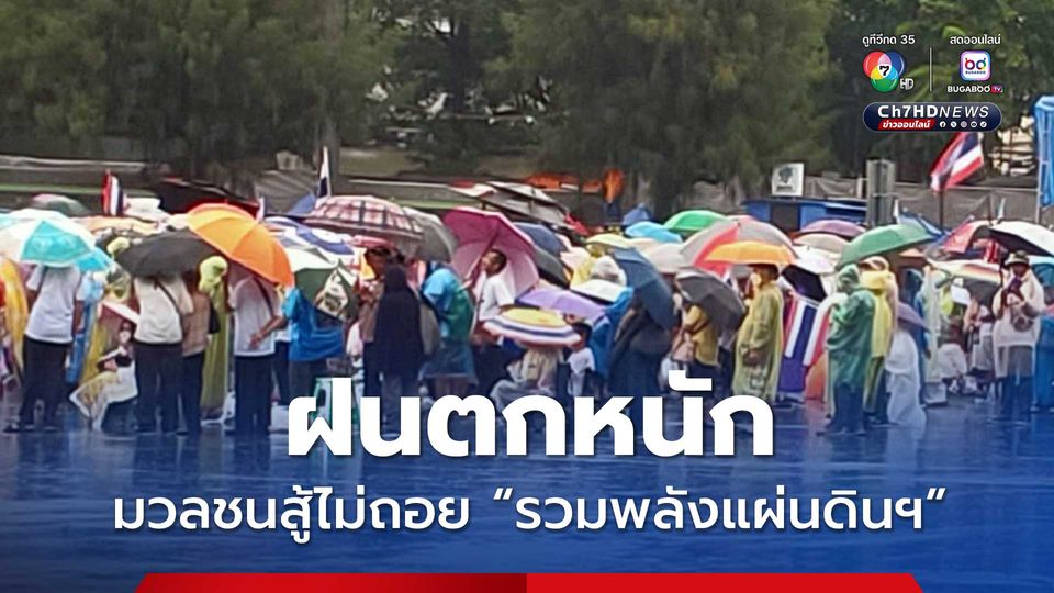 อนุสาวรีย์ชัยสมรภูมิ ฝนตกหนัก ชุมนุมรวมพลังแผ่นดิน มวลชนสู้ไม่ถอย ปักหลักอยู่ที่หน้าเวที เย็นวันนี้จตุพรแถลงแนวทางการเคลื่อนไหว