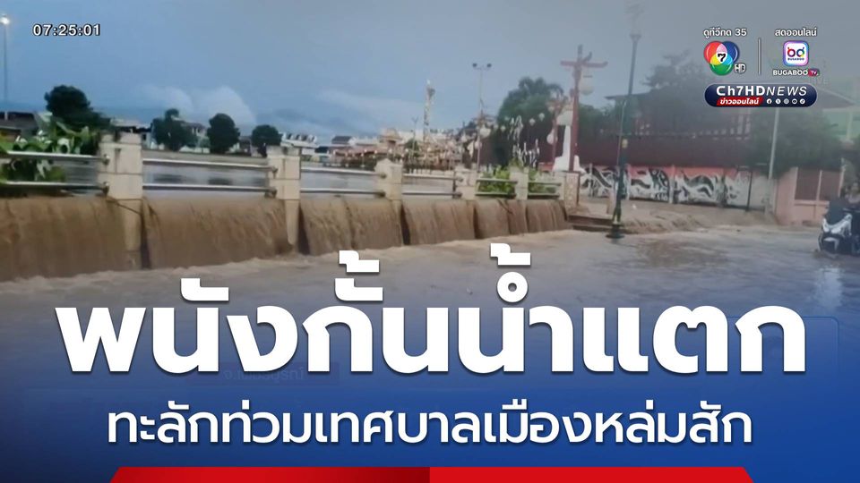 สนามข่าว 7 สี - แม้พายุดีเปรสชัน "หนองฟ้า" จะอ่อนกำลังลงเป็นหย่อมความกดอากาศต่ำ แต่ยังส่งผลกระทบต่อประเทศไทย ทำให้มีฝนตกหนักหลายพื้นที่ โดยเฉพาะทางภาคเหนือ อย่างที่จังหวัดเพชรบูรณ์ ช่วงเวลา 22.30 น. เมื่อวานนี้ พนังกั้นน้ำริมแม่น้ำป่าสักแตก 1 จุด ทำให้มวลน้ำทะลักท่วมพื้นที่เขตเทศบาลเมืองหล่มสัก