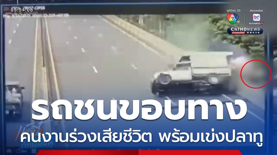 รถกระบะ ชนขอบทางยกระดับ คนงานร่วงเสียชีวิต