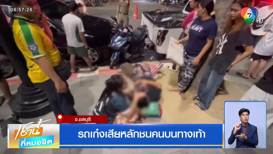 เช้านี้ที่หมอชิต - สาวเคราะห์ร้าย กำลังยืนเก็บของอยู่ท้ายรถกระบอยู่ดี ๆ ถูกรถเก๋งขับพุ่งชน บาดเจ็บขาซ้ายหัก