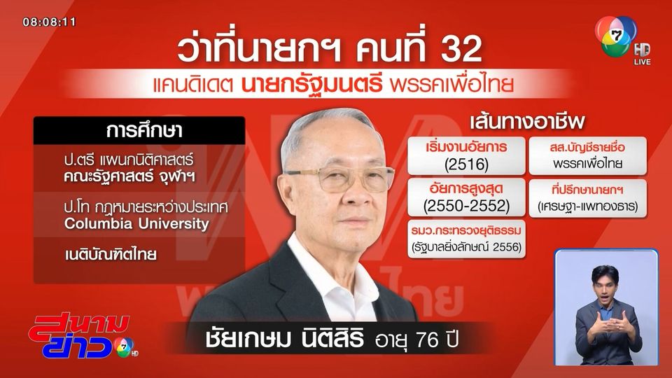 ล่าสุด พรรคเพื่อไทย ได้โพสต์ Facebook ของพรรค เปิดประวัติของ ศาสตราจารย์พิเศษ ชัยเกษม นิติสิริ ซึ่งระบุไว้ว่าเป็นหนึ่งในบุคคลสำคัญในแวดวงกฎหมาย และการเมืองไทย ด้วยประสบการณ์ยาวนาน ทั้งในฐานะอัยการสูงสุด และรัฐมนตรีว่าการกระทรวงยุติธรรม