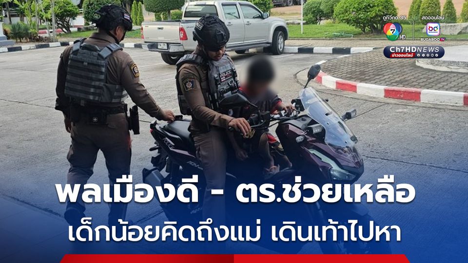 เด็กชายอายุ 9 ขวบ คิดถึงแม่ เดินเท้าไปหาแม่กับหมาคู่ใจ พลเมืองดีแจ้ง ตร. ขี่รถ จยย.ตามหาแม่จนเจอ แม่สอนอย่าทำแบบนี้อีก
