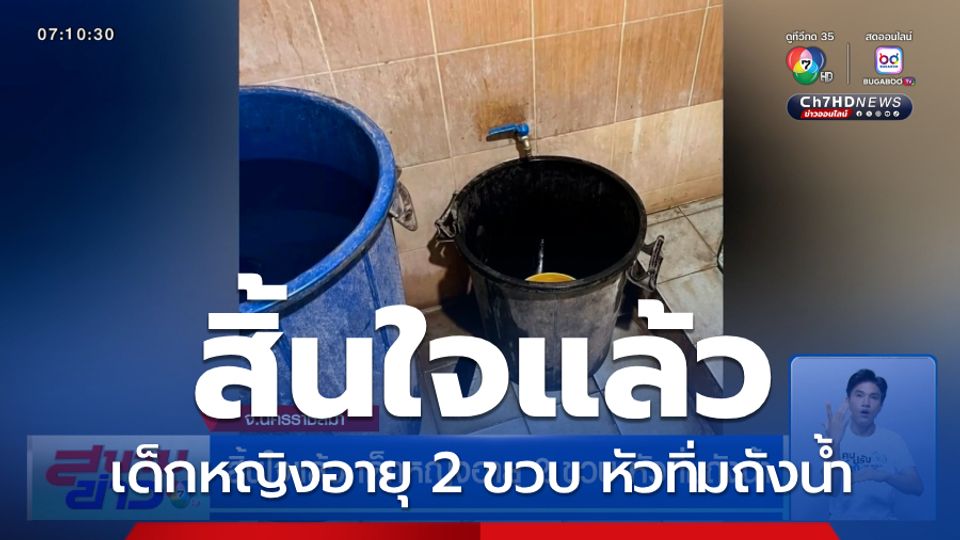 สนามข่าว 7 สี - เด็กหญิงอายุ 2 ขวบ ที่ถูกพบหัวทิ่มลงไปในถังน้ำ เสียชีวิตแล้ว หลังแพทย์พยายามยื้อชีวิตอย่างเต็มที่