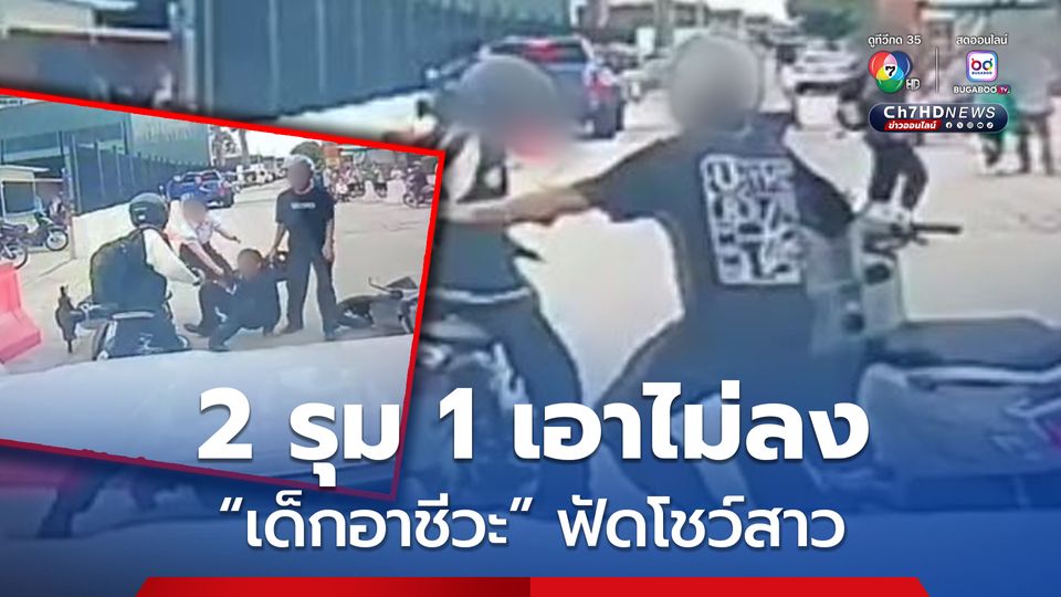 แต่เด็กอาชีวะที่มาคนเดียว เหมือนมีเชิงมวยที่ดีกว่า ได้ต่อยกลับไปจนเด็กอาชีวะที่มากัน 2 คนต้องกระเจิง แล้วรอจังหวะจะเข้าทำร้ายใหม่ แล้วก็เข้ามารุมทำร้ายกันอีกจนชุลมุนกัน ซึ่งระหว่างนั้น มีเด็กนักเรียนหญิง ชั้นมัธยมฯ รวมถึง รปภ. ของโรงเรียนและคนขับรถสองแถวเข้ามาห้าม ก่อนจะแยกย้ายกันไป