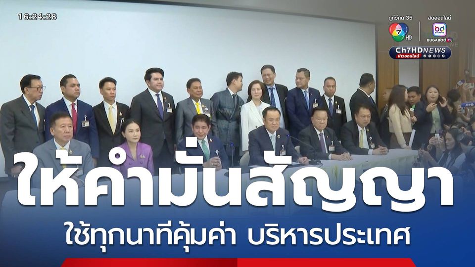ข่าวเย็นประเด็นร้อน - หลังจากได้เสียงจากพรรคประชาชนไปแล้ว "นายอนุทิน" ก็นำทีมพรรคที่สนับสนุนตั้งรัฐบาลเสียงข้างน้อย 146 คน แถลงการทำงาน ต่อจากนี้เป็นไปตามสัญญา 5 ข้อ