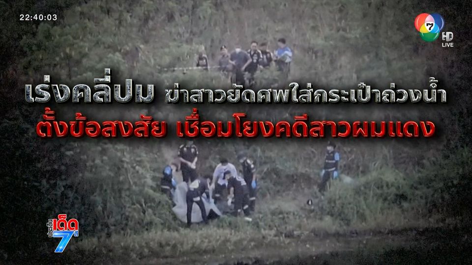 ประเด็นเด็ด 7 สี - เหตุฆาตกรรมอำพราง ฆ่ายัดศพหญิงสาวใส่กระเป๋าดำถ่วงน้ำ ในจังหวัดชลบุรี ตำรวจเร่งคลี่ปมฆ่าโหด ตั้งข้อสันนิษฐาน มีความเชื่อมโยงกับคดีค้าง เพราะอะไร ไปติดตามจากคุณอรรถพล ดวงจินดา ในช่วง "เจาะเกาะติด"