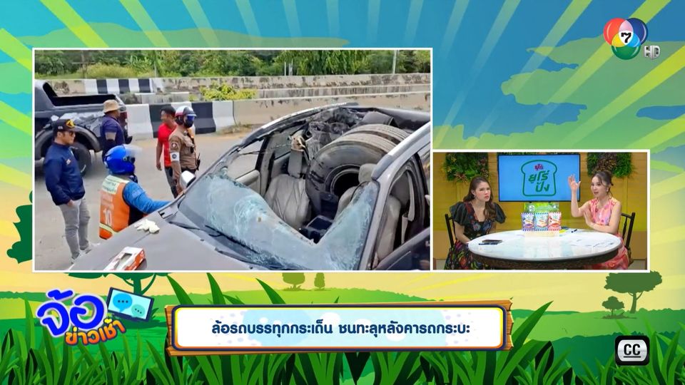 จ้อข่าวเช้า - ล้อรถบรรทุกกระเด็น ชนทะลุหลังคารถกระบะ