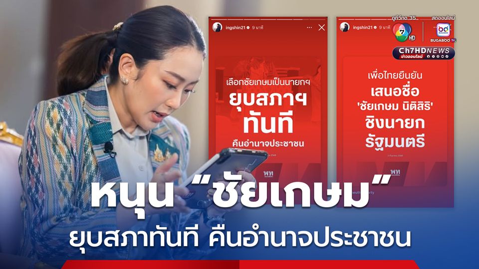"หัวหน้าแพทองธาร” แชร์โพสต์พรรคเพื่อไทย เลือก “ชัยเกษม” ยุบสภาทันที คืนอำนาจประชาชน