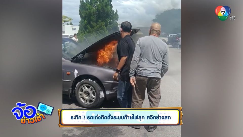 จ้อข่าวเช้า - ระทึก รถเก๋งติดตั้งระบบก๊าซไฟลุก หวิดย่างสด