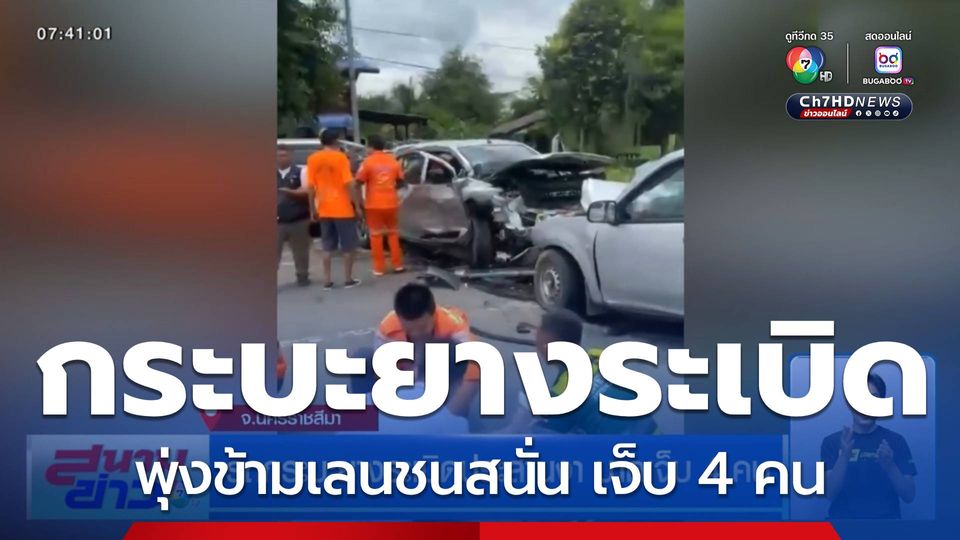 รถกระบะยางระเบิดประสานงา บาดเจ็บ 4 คน จ.นครราชสีมา
