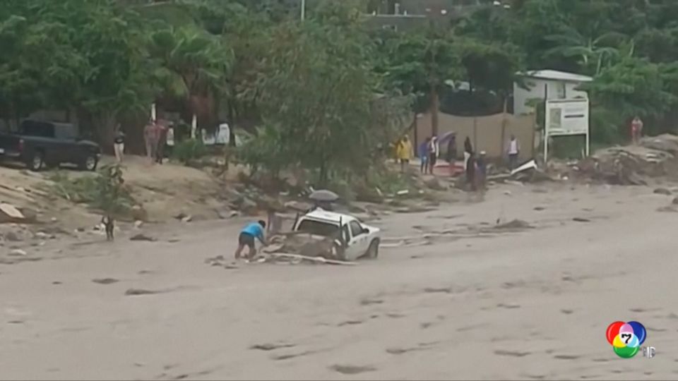 อิทธิพลจากพายุเฮอริเคน "ลอเรนา" ส่งผลให้เมืองชายฝั่งด้านตะวันออกของเม็กซิโก มีฝนตกหนักจนเกิดน้ำท่วม ถนนหลายสายเต็มไปด้วยดินโคลน