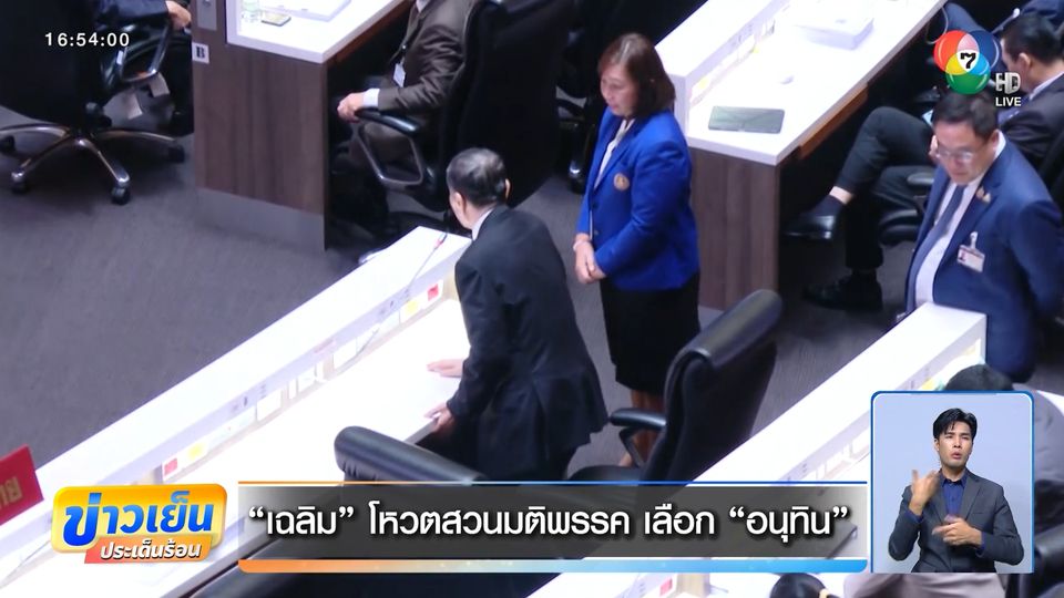 ข่าวเย็นประเด็นร้อน - เรียกเสียงฮือฮาให้ที่ประชุมสภา เมื่อ ร้อยตำรวจเอก เฉลิม อยู่บำรุง เลือกโหวตสวนมติพรรคเพื่อไทย เลือก นายอนุทิน เป็นนายกฯ