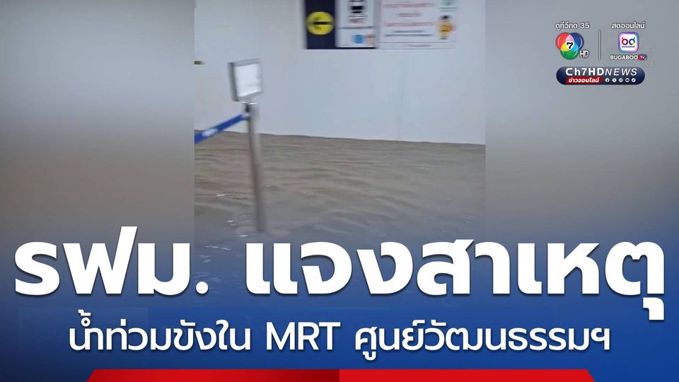 ข่าวเด็ด 7 สี - รฟม. ชี้แจงสาเหตุน้ำท่วม MRT สถานีศูนย์วัฒนธรรมฯ เกิดจากฝนตกหนักและมีการก่อสร้างอาคารใกล้สถานี ส่งผลให้มีน้ำเอ่อล้นเข้ามาภายในสถานี