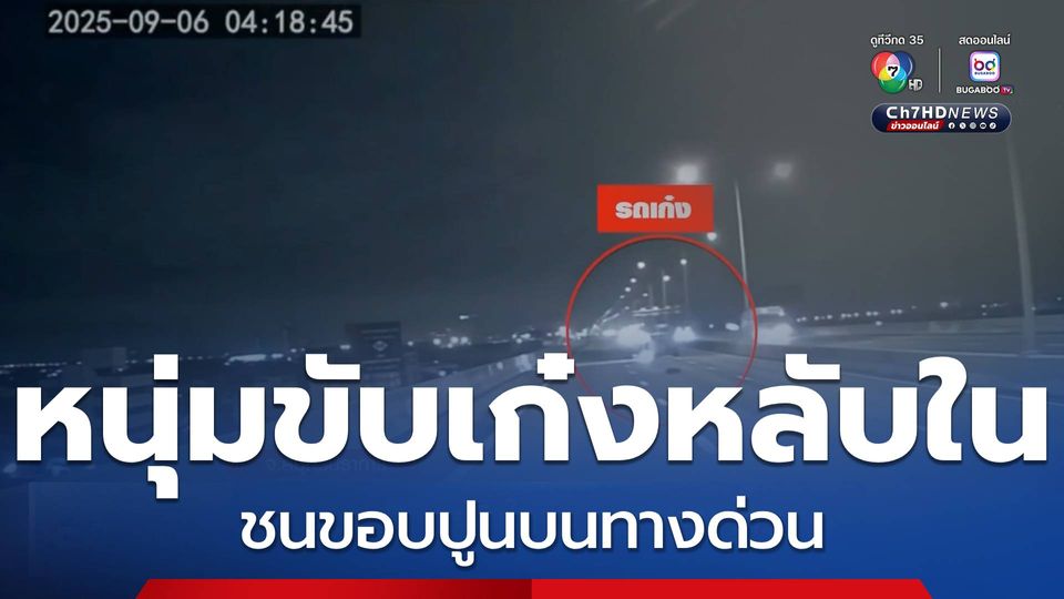 ข่าวเด็ด 7 สี - หนุ่มขับรถเก๋งมาบนทางด่วนบูรพาวิถี เกิดหลับใน ทำให้รถเสียหลัก ชนขอบปูนรถพลิกตะแคงบนถนน