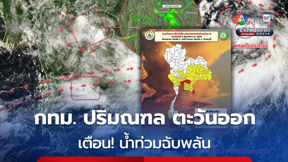 เช้านี้ (6 ก.ย.68) ร่องมรสุมยังคงพาดผ่านบริเวณภาคกลาง ภาคอีสาน เมฆและฝนเกิดขึ้นภายใต้อิทธิพลของร่องมรสุม ปกคลุมบริเวณภาคกลาง ภาคอีสาน ภาคตะวันออก กทม.และปริมณฑล ยังต้องเฝ้าระวังฝนตกหนักถึงหนักมาก อาจทำให้เกิดน้ำท่วมขัง น้ำรอการระบาย น้ำป่าไหลหลาก น้ำท่วมฉับพลันได้โดยเฉพาะพื้นที่ของ กทม. ปริมณฑล และภาคตะวันออก