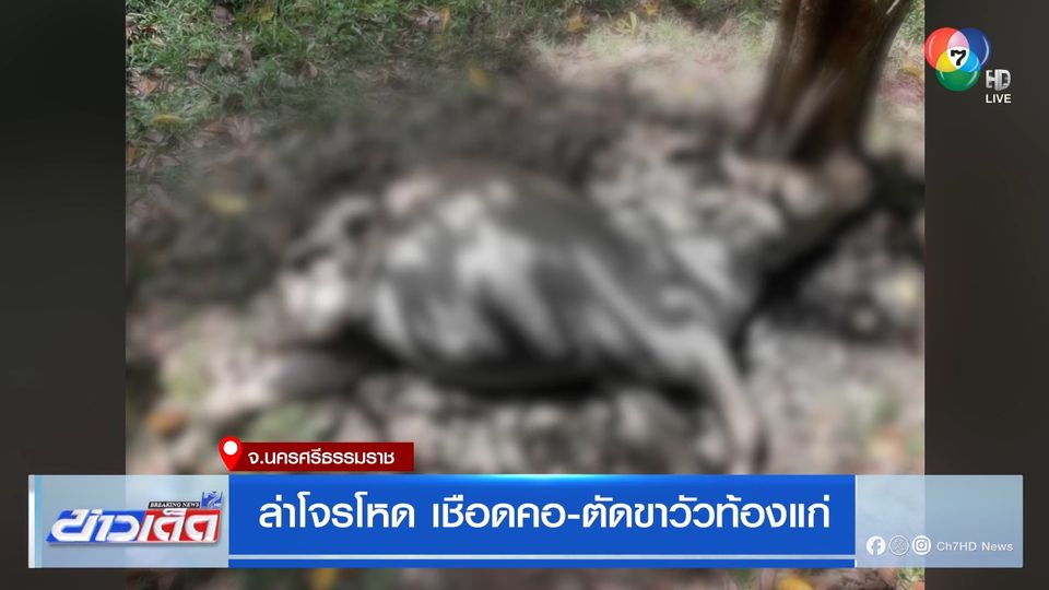 ข่าวเด็ด 7 สี - ตำรวจ สภ.เมือง จังหวัดนครศรีธรรมราช เร่งล่าโจรใจโหด เชือดคอฆ่า-ตัดขาวัวท้องแก่ของตำรวจ ดับสยองคาสวน