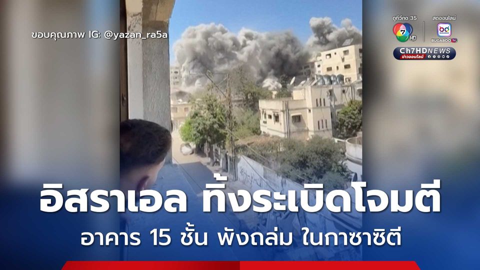 กองทัพอิสราเอลทิ้งระเบิดใส่อาคารสูง 15 ชั้น ในกาซา ซิตี จนพังถล่มลงมา นับเป็นการทำลายอาคารสูง 2 วันติดต่อกัน เสียหายแล้วกว่า 2.2 ล้านล้านบาท