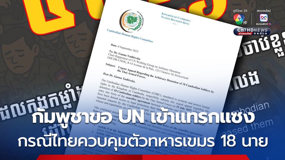 วันนี้ (7 ก.ย. 68) สำนักข่าว ขแมร์ ไทมส์ รายงานว่า คณะกรรมการสิทธิมนุษยชนกัมพูชา (CHRC) ได้ร้องขออย่างเป็นทางการให้ทาง “คณะทำงานสหประชาชาติ” เข้าแทรกแซงกรณี กองทัพไทยควบคุมตัวทหารกัมพูชา 18 นาย ที่ถูกควบคุมตัว ภายหลังการลงนามข้อตกลงหยุดยิงระหว่างกัมพูชา-ไทย เมื่อวันที่ 29 กรกฎาคม 2568 ที่ผ่านมา ณ ประเทศมาเลเซีย