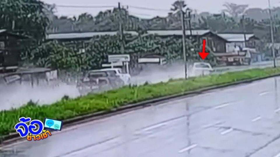 จ้อข่าวเช้า - สลด ! หนุ่มขับกระบะฝ่าฝนกลับไปเยี่ยมพ่อ เหินน้ำชนรถบรรทุก เสียชีวิต