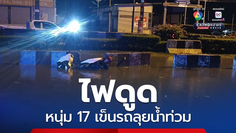 ฝนตกหนัก หนุ่มวัย 17 ปี เข็นรถจักรยานยนต์ ลุยน้ำท่วมบนถนนแพรกษา รถกระบะขับมาเร็วคลื่นซัดจนเสียหลักล้ม มือจับแบริเออร์กั้นทางก่อสร้างถนน ไฟดูดเสียชีวิต