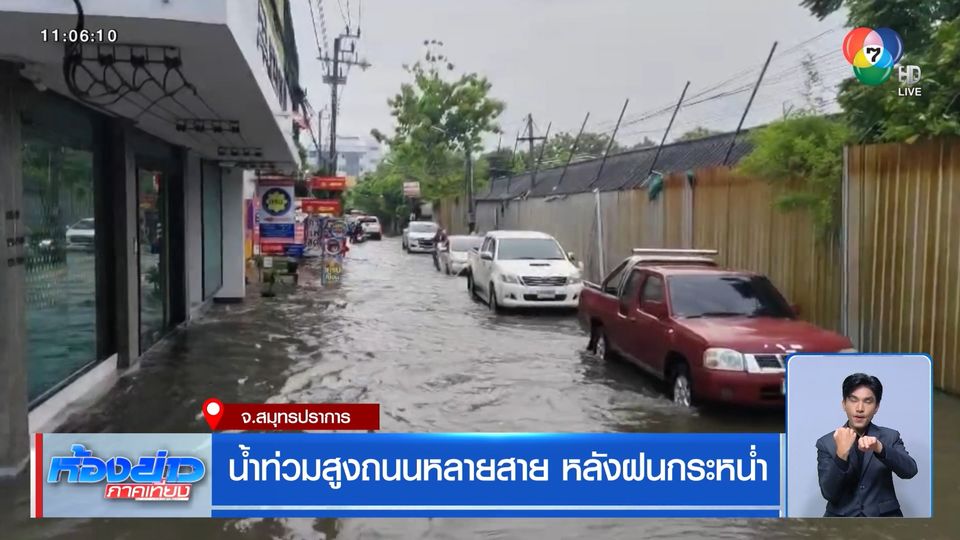 ฝนตกหนักในพื้นที่จังหวัดสมุทรปราการ ทำให้ถนนหลายสาย ไม่ว่าจะเป็นถนนสุขุมวิท ศรีนครินทร์ เทพารักษ์ และถนนแพรกษา มีน้ำท่วมสูง การจราจร ชั่วโมงเร่งด่วนติดขัดอย่างมาก ประชาชนที่ต้องเดินทางไปทำงาน ได้รับความเดือดร้อน
