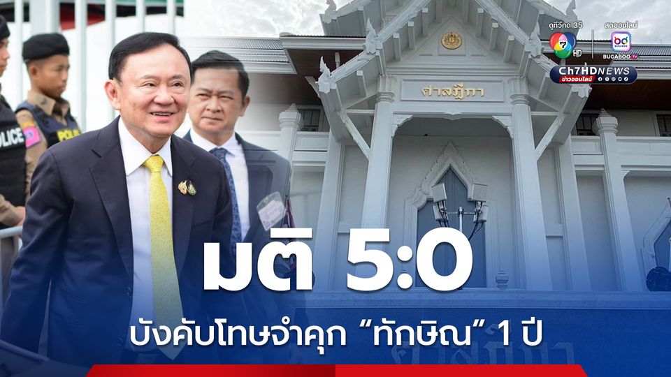 มติเอกฉันท์ 5 ต่อ 0 องค์คณะศาลฎีกาฯ สั่งบังคับโทษ “ทักษิณ” กลับเข้าเรือนจำรับโทษจำคุก 1 ปี