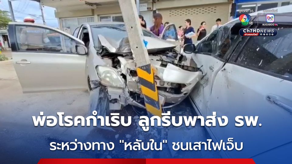 พ่อป่วยโรคกำเริบหายในหอบเหนื่อย ลูกชายรีบพาพ่อขึ้นรถ จะไปส่ง รพ. ทั้งที่ตัวเองง่วงนอนมาก เพราะตื่นเช้าสะสมหลายวัน ระหว่างทางอีก 700 เมตร จะถึง รพ. ลูกชายเกิดหลับใน รถชนเสาไฟบาดเจ็บ