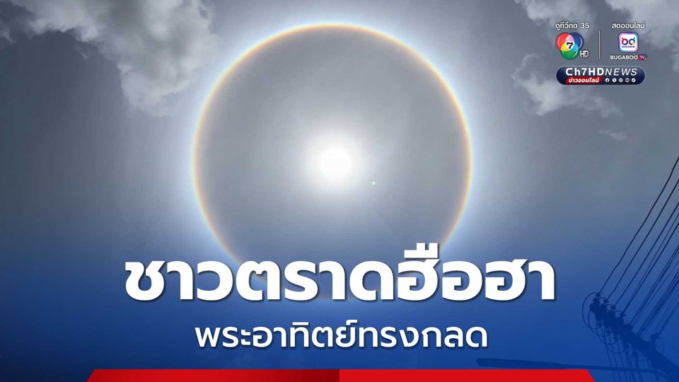 วันนี้ (10 ก.ย. 68) ผู้สื่อข่าวรายงานว่า เมื่อเวลา 12.00 น. ที่ผ่านมา ได้เกิดปรากฏการณ์พระอาทิตย์ทรงกลด หรือ “Halo” ในพื้นที่ อ.เมืองตราด จ.ตราด ซึ่งเป็นปรากฏการณ์ทางแสงตามธรรมชาติที่หาชมได้ไม่บ่อยนัก สร้างความฮือฮาตื่นตาตื่นใจแก่ประชาชนที่พบเห็น พากันใช้โทรศัพท์ถ่ายรูปและบันทึกคลิปวิดีโอไว้ เชื่อว่าเป็นเรื่องราวที่ดี