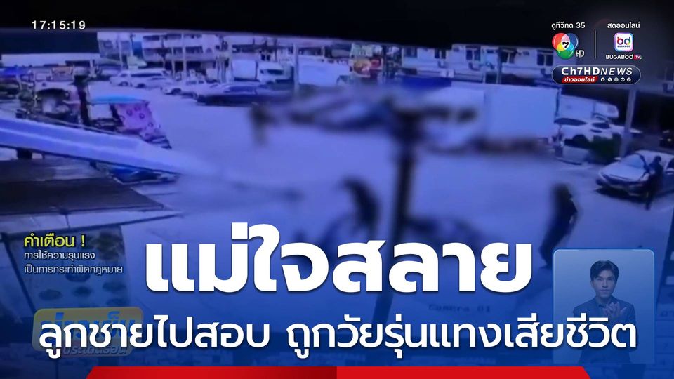 ข่าวเย็นประเด็นร้อน - แม่ร่ำไห้หัวใจสลาย ลูกชายกำลังจะไปสอบ ถูกกลุ่มวัยรุ่นรุมทำร้าย และแทงเสียชีวิต หน้าตลาดย่านบางเสาธง สมุทรปราการ ล่าสุด กลุ่มวัยรุ่นผู้ก่อเหตุ เข้ามอบตัวแล้ว