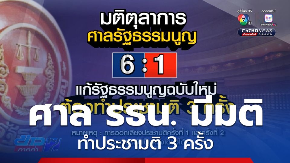 ข่าวภาคค่ำ - ศาลรัฐธรรมนูญ ชี้รัฐสภามีอำนาจจัดทำรัฐธรรมนูญใหม่ได้ ต้องทำประชามติ 3 ครั้ง